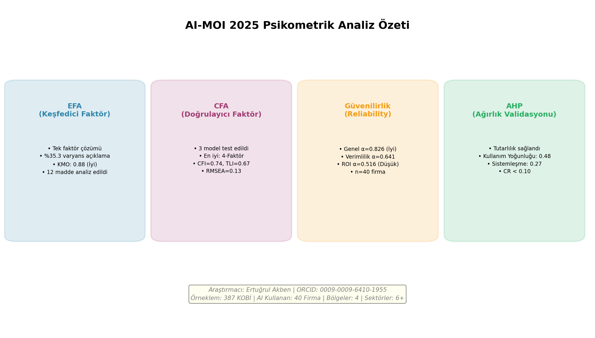 Akben, Ertuğrul. "AI Maturity and Operationalization in Turkish SMEs: Evidence from a Mixed-Methods Study." AI-MOI Turkey 2025 Research Report, 2025.Araştırmanın Katkıları